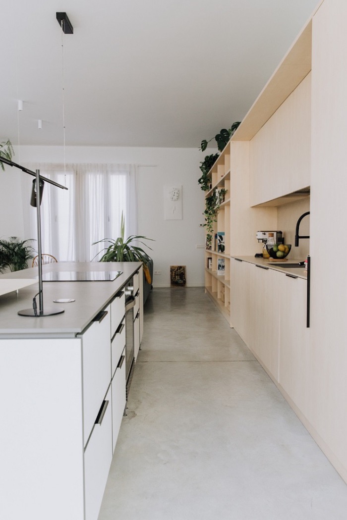 眼睛攜著蔥郁,進入室內,陽光晃眼半虛半瞇著,家里沒有什么過余的裝飾,大多選擇天然的材質。 巖板的澄凈、原木的質樸、皮革的柔軟,更多的注重是材質本身帶給人的體驗,「舒服」一直是這個家首要考慮的標準。